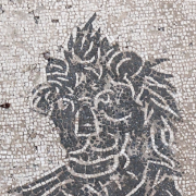 Detail immediately above: Head of the pink-robed figure, And Then We Saw the Daughter of the Minotaur.